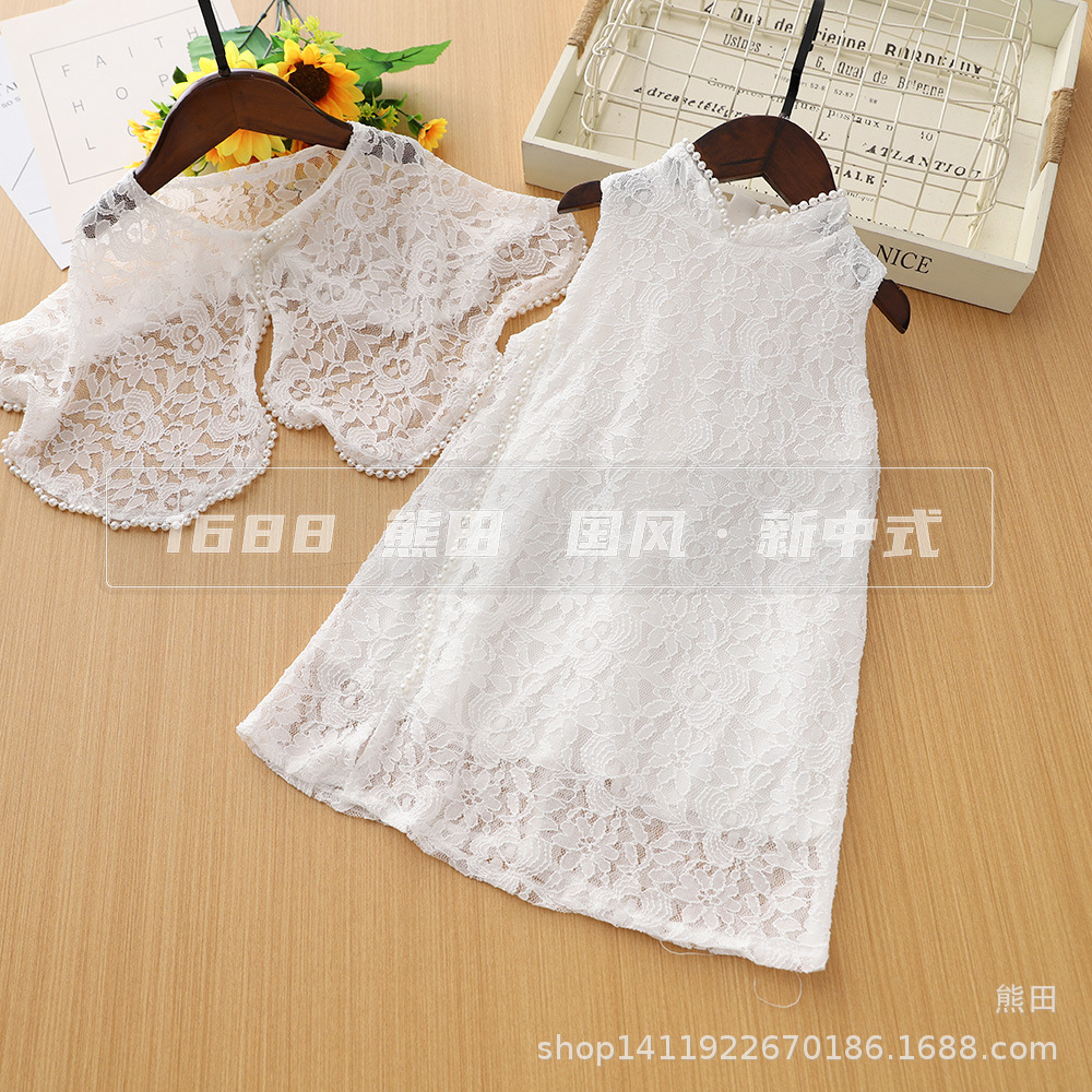 夏の香りのレースのチャイナドレスツーピースセットハイエンドかぎ針編みショール女の子チャイナドレス子供唐装チャイナドレス