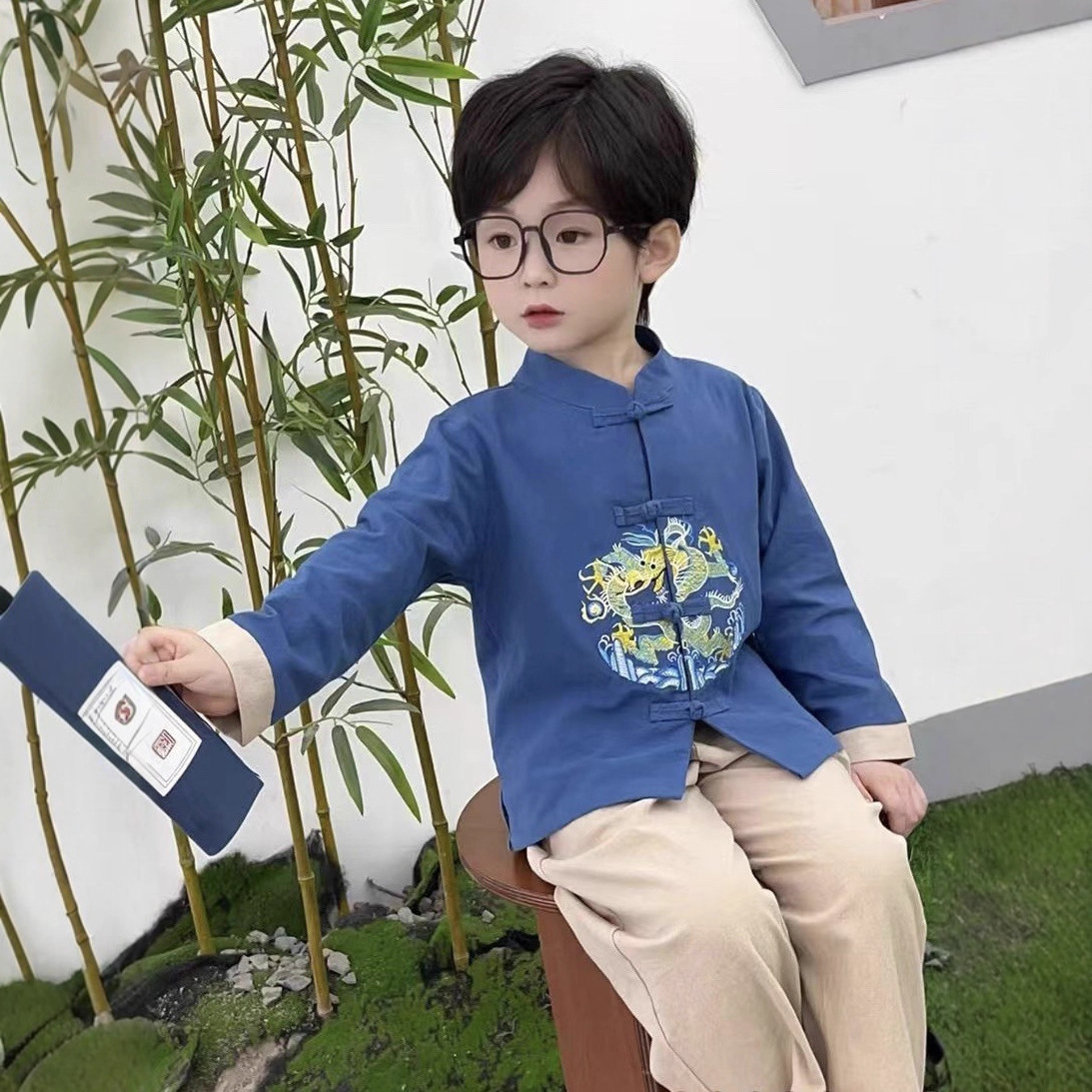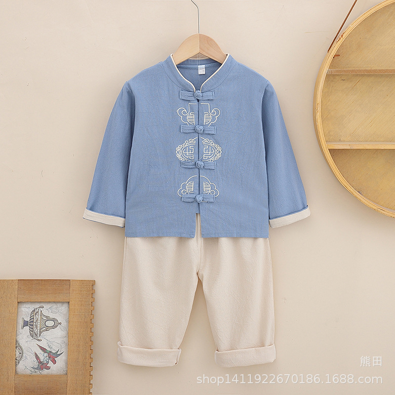 男の子の唐の服のスーツの漢服の秋の厚手の子供の中国風の2つのセットの赤ちゃんの夏服の子供服のファッション