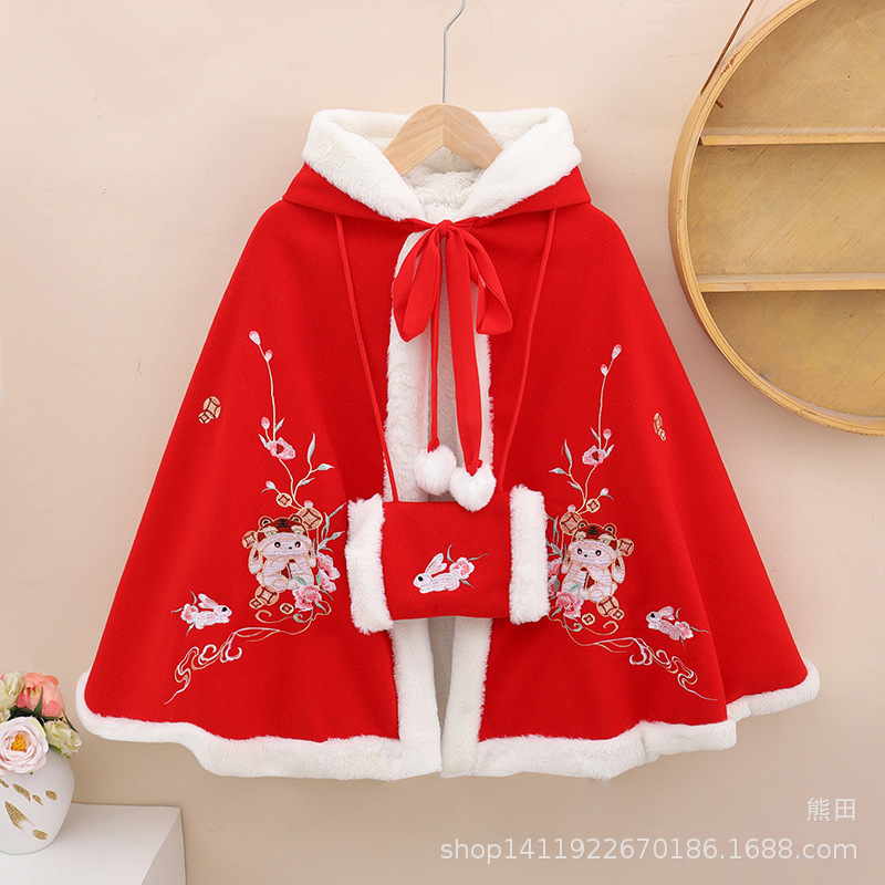 女の子の古風マント冬の中国風漢服の外に刺繍のマントの子供の気質が帽子のマントをつないでいます。