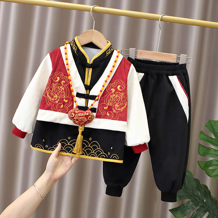 男の子の唐服のスーツの漢服の冬の新年の服の子供の中国風の2つのセットの赤ちゃんの冬の服の子供服