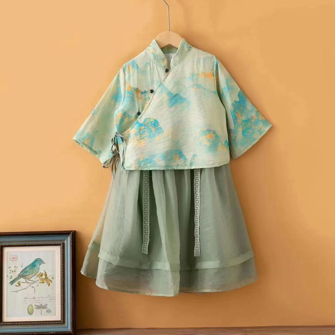 2023新しい夏の子供のチャイナドレスの洋気プリントプリンセスドレス中国風の民族の女の子のドレス