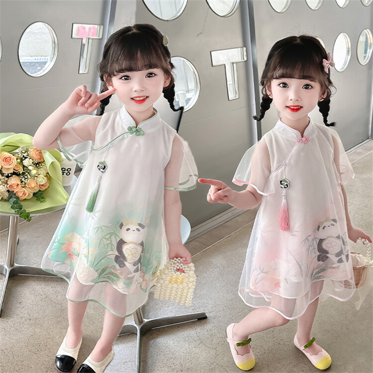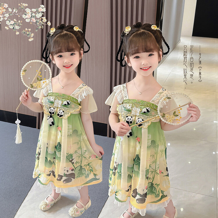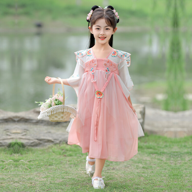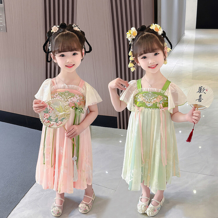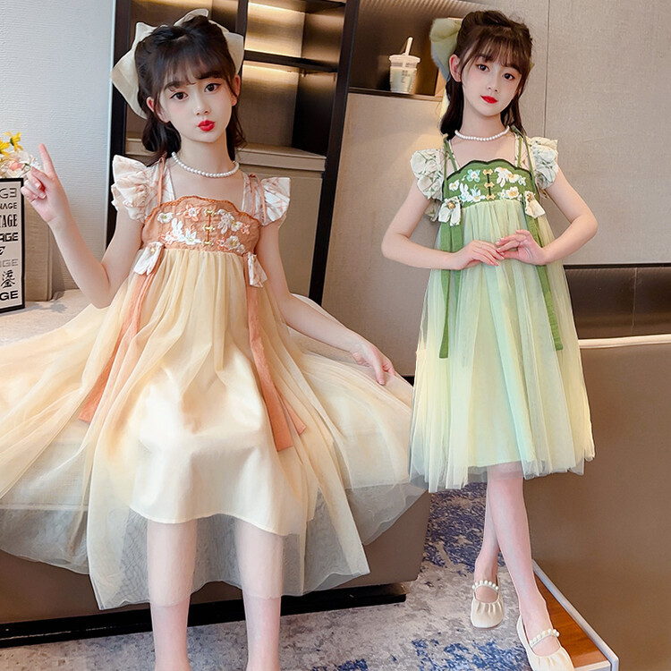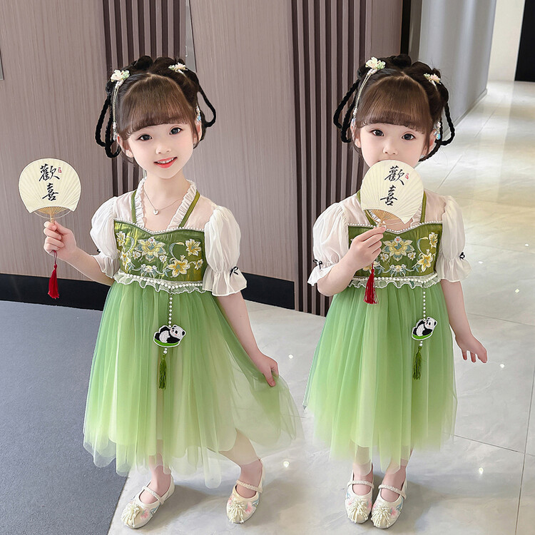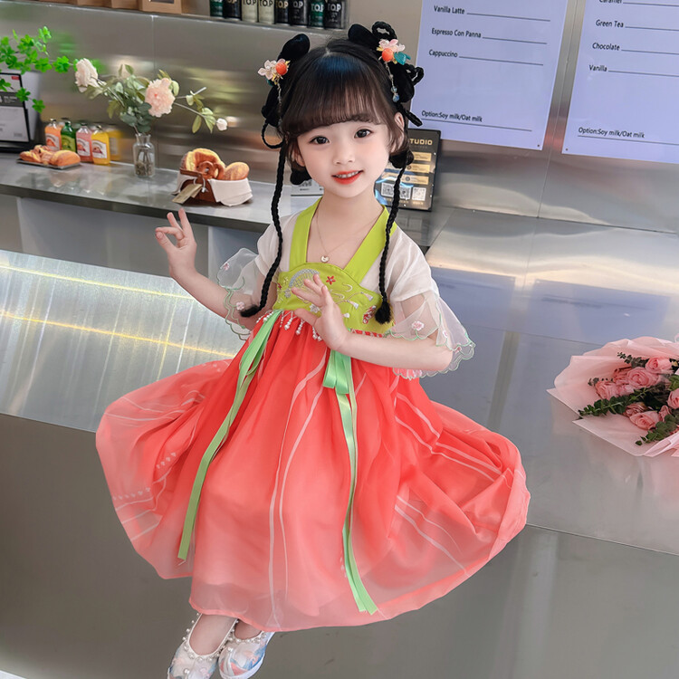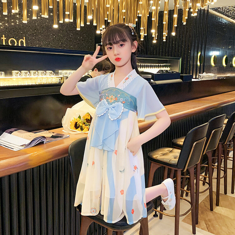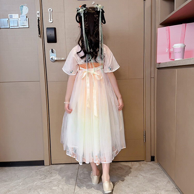 漢服の女の子のチャイナドレスの夏服の2023新型の子供の中国風の時代のスカートの女の子の超仙の夏のワンピース