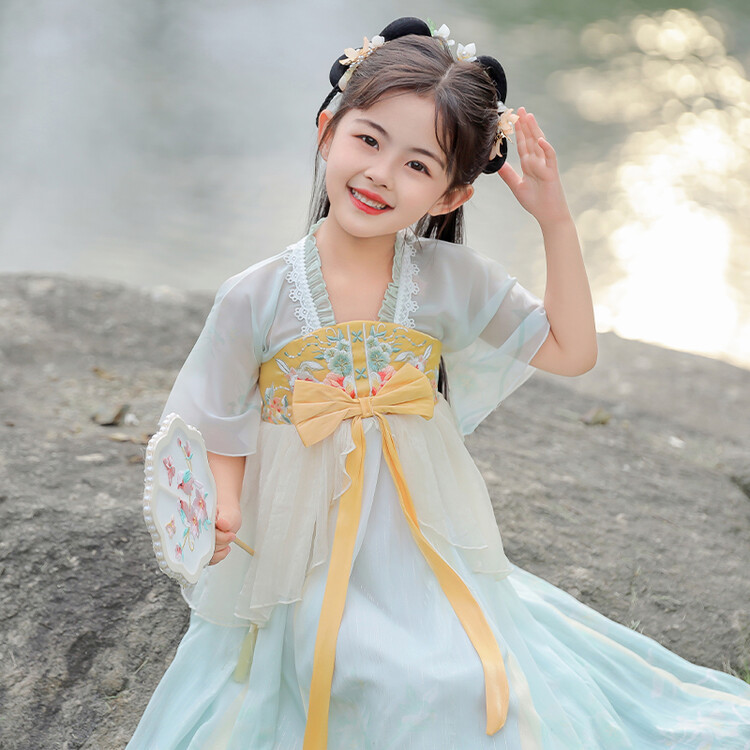 漢服の女の子の夏の女の子の古風な漢服のスカートの民国の風の服装の春秋の薄い金の子供の国慶節の公演服