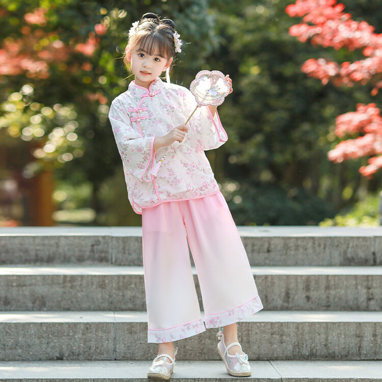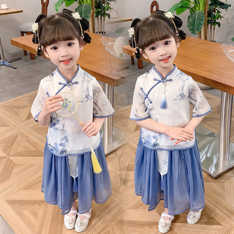 女の子のスカート2023子供服夏の新商品中国風の甘い漢服の女の子の唐装の演技服の2つのセット