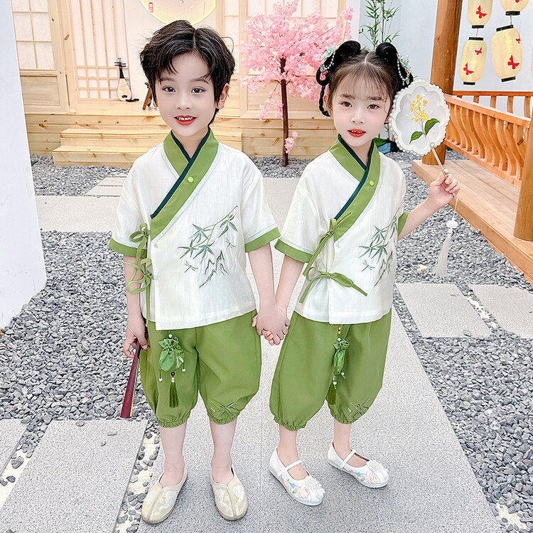 男の子の唐服のスーツの漢服の夏の薄いタイプの子供の中国風の漢服の赤ちゃんの夏服の時代の子供服のファッション
