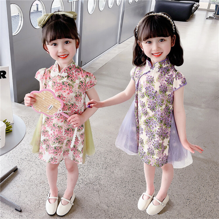 子供のワンピース夏の女の子のスカートの中で子供の中国風の女の子のシフォンのスカートの王女のスカートの新型のチャイナドレス