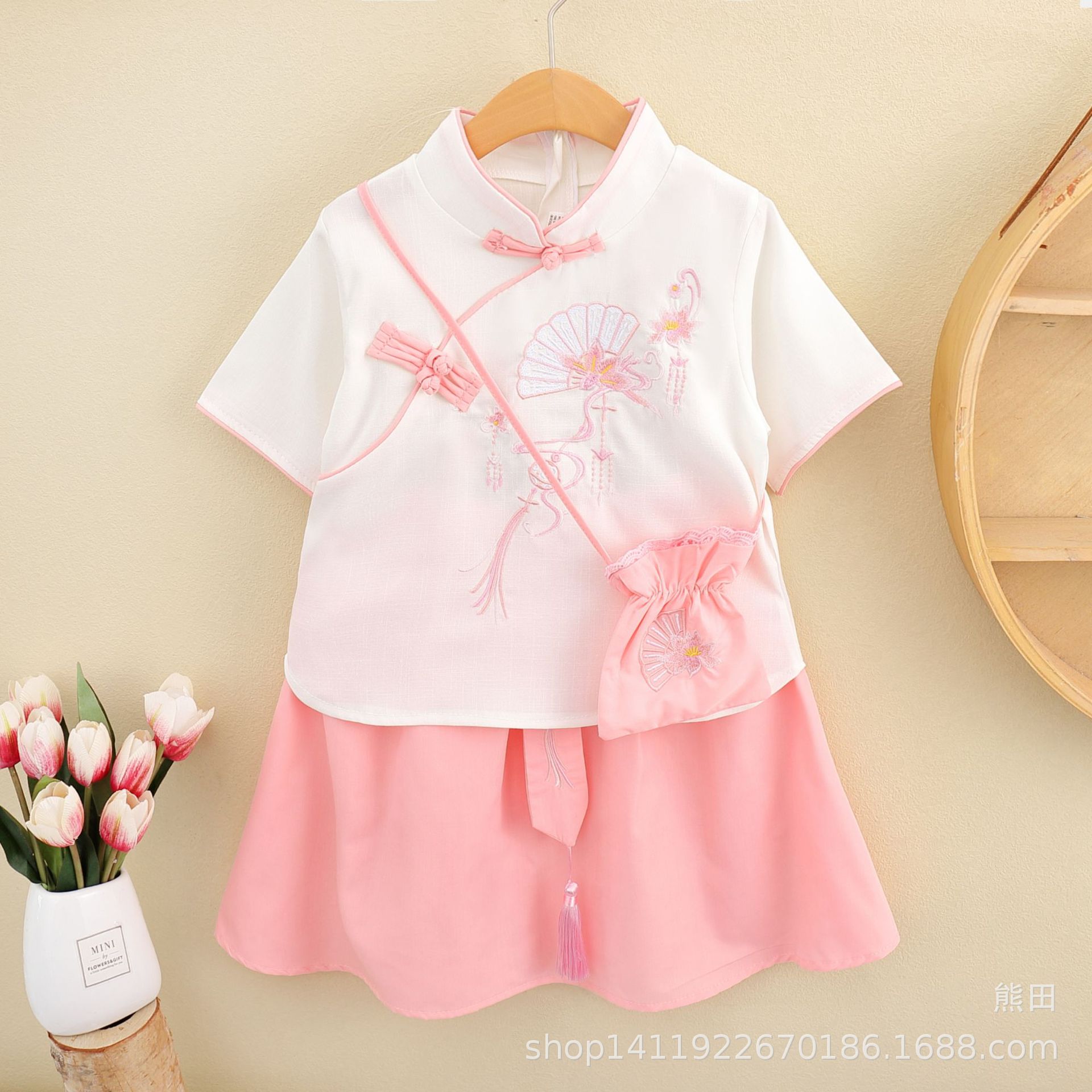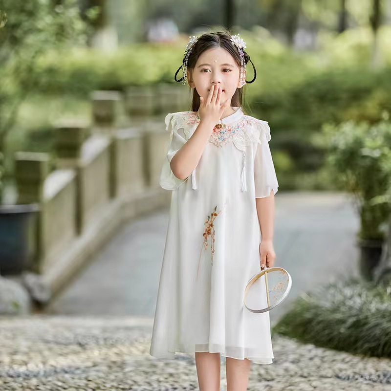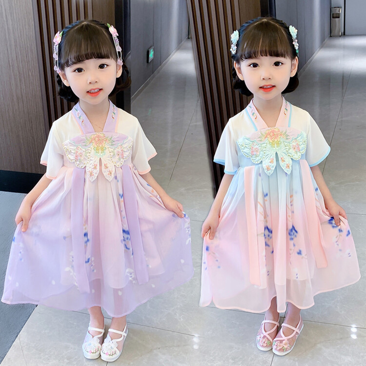 女の子刺繍ワンピース2022新型赤ちゃん民族風漢服子供中国風復古夏服プリンセススカート