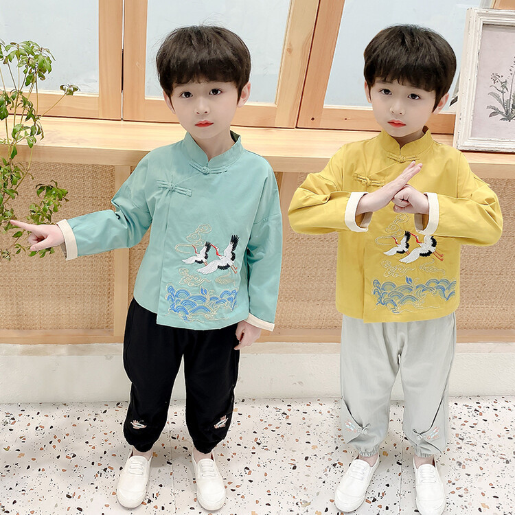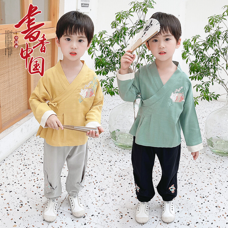 男児唐装漢服春秋男児新中国風童装演出服子供時代装国学服演出服