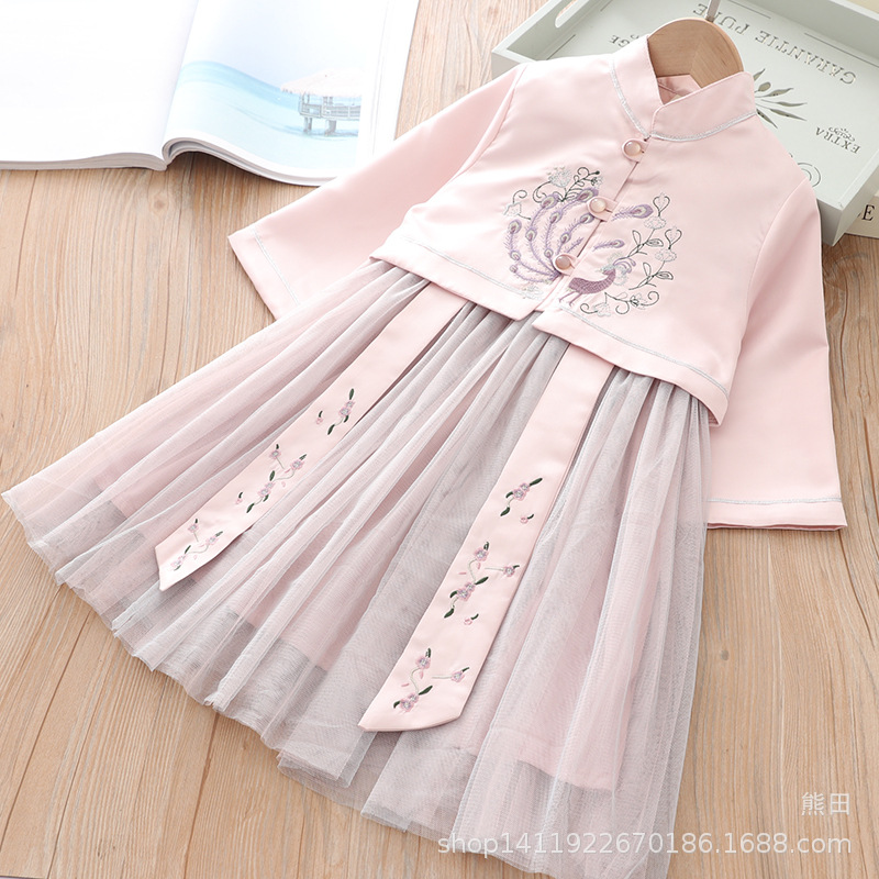 子供服の女の子の漢服の秋服セット2020新作の女の子のチャイナドレスの2つのセットの子供の中国風唐服