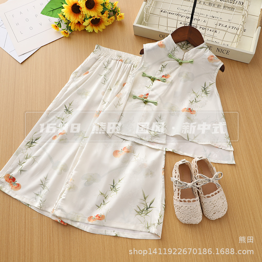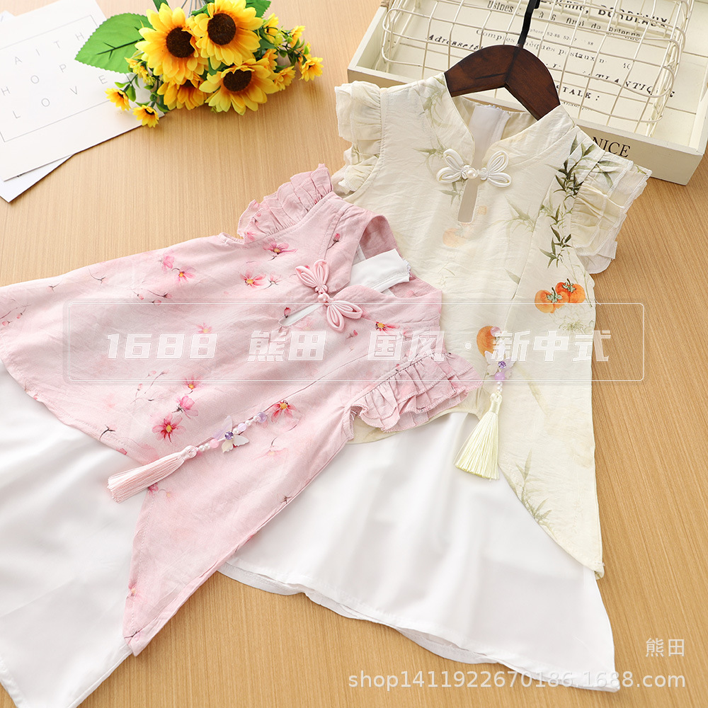 女の子中国風チャイナドレス夏ノースリーブ国風漢服セット子供新中国風古風洋風セット