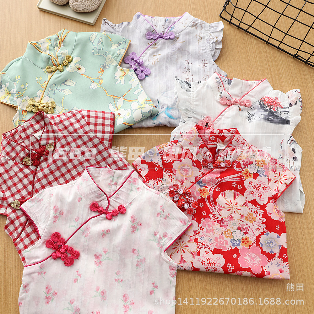女の子の古風のチャイナドレスのスカートの夏の半袖の新型の子供の中国風のチャイナドレスの赤ちゃんのレトロな唐の服はチャイナドレスを改良します。