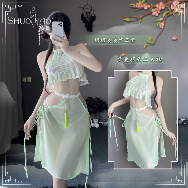 中華娘のチャイナドレスのセクシーな下着のエプロンの純粋な欲望のメイド服の2つのセットのメイドの日系の復古スカートのスカートの273