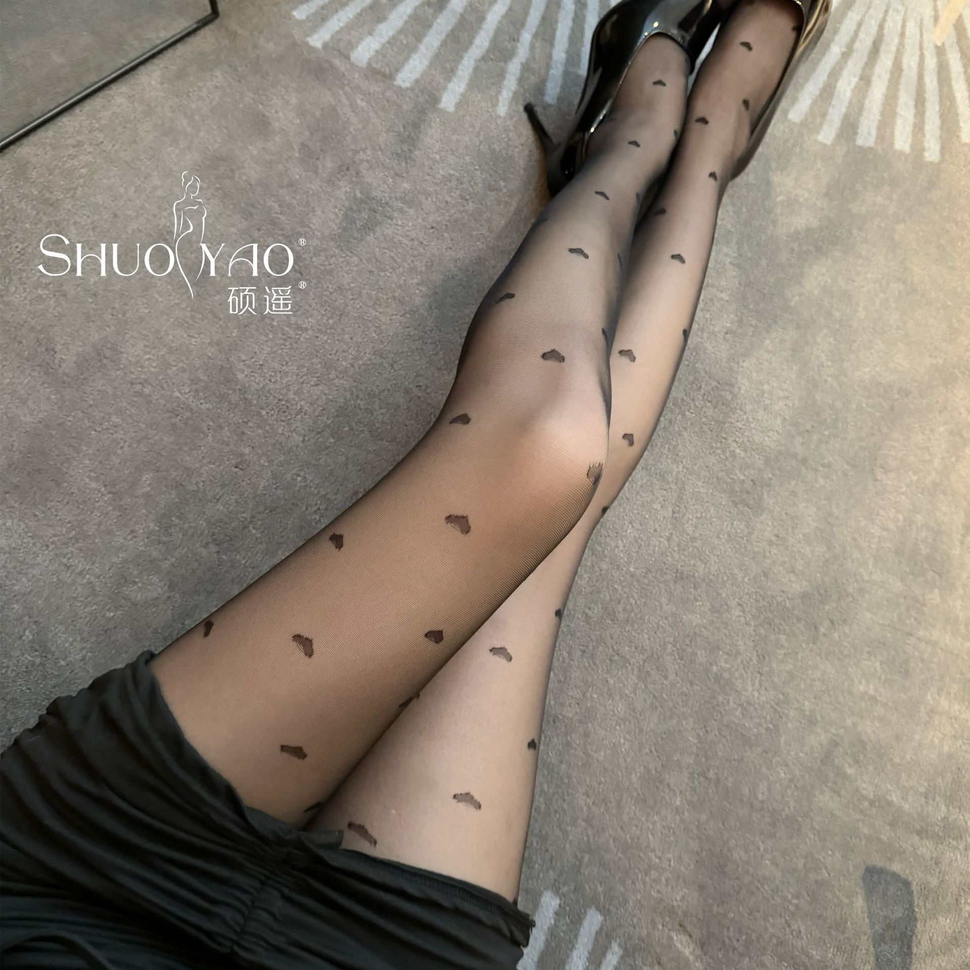 超薄黒ストッキング女性セクシーな波点包芯糸ジャカード愛点蝶結びストッキングA215