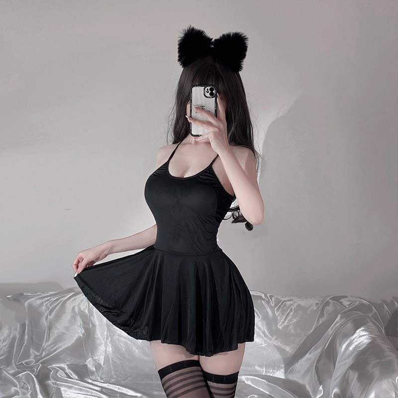 セクシーな下着のセクシーな猫の制服の猫の女の役はパジャマを演じます。