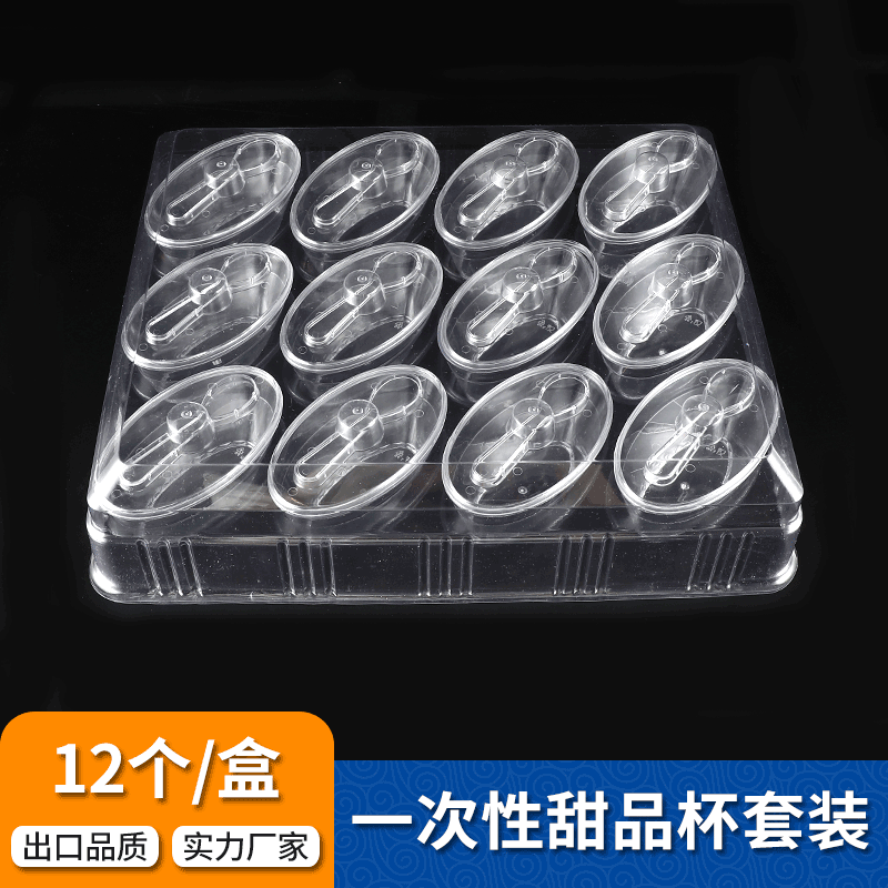 卸売り透明楕円形スプーン付きデザートカップセット12個セット使い捨て透明アイスクリームカップムースカップ