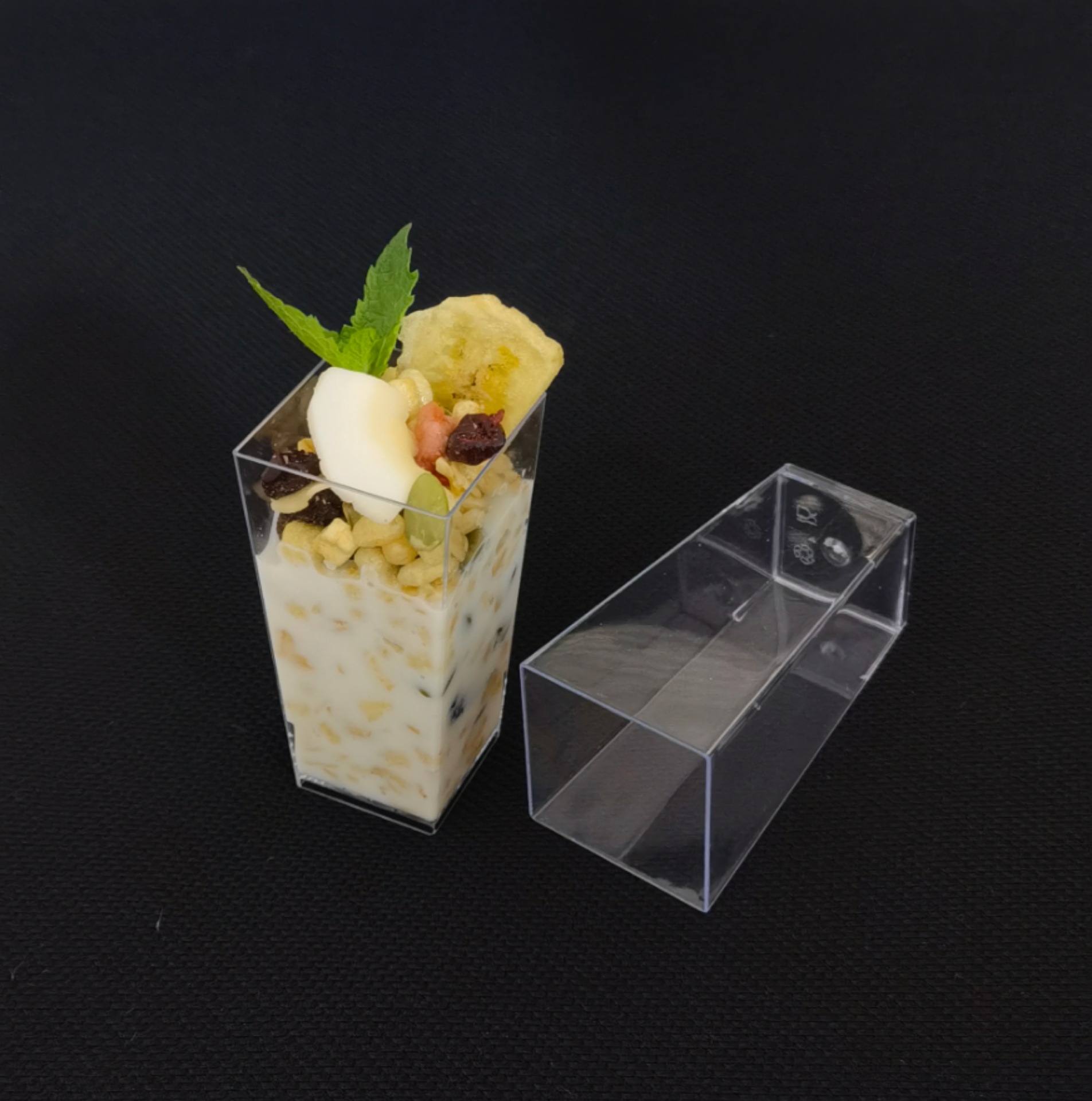 90ml 100ml四角い使い捨てデザートカップpsプラスチックムースカップケーキカップパフェカップサラダカップ