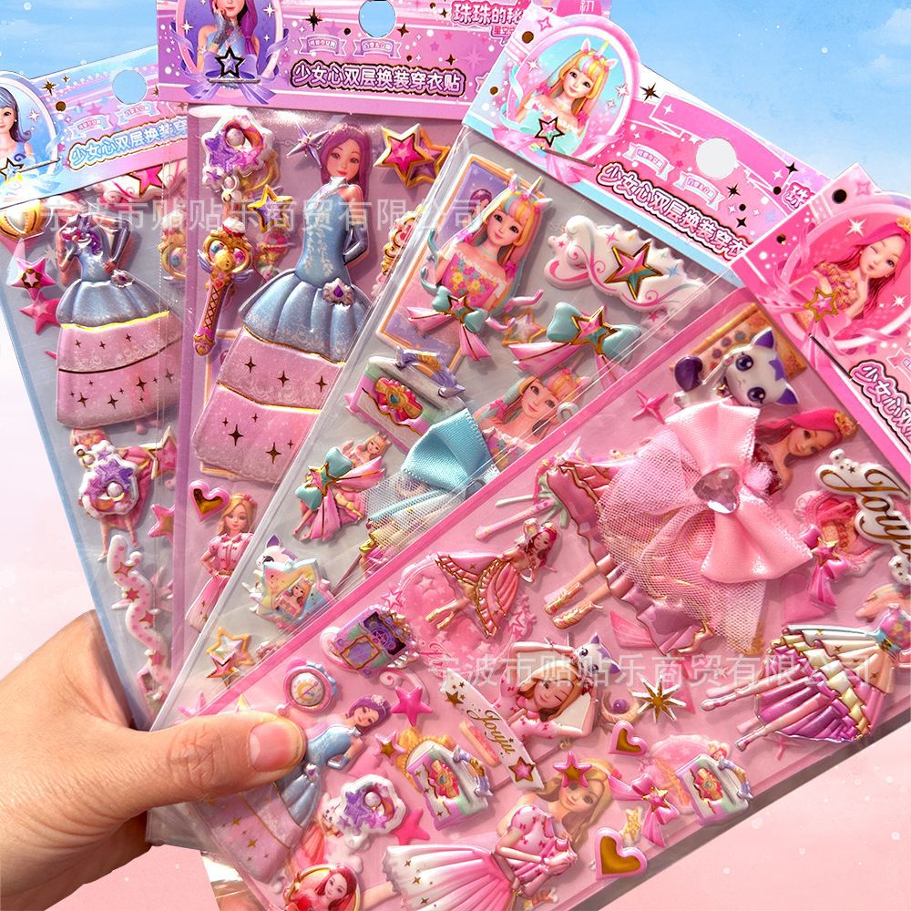 ガーリーハート二層着せ替えビーズシークレットプリンセスかわいい魔法の着せ替え立体3Dバブルステッカー