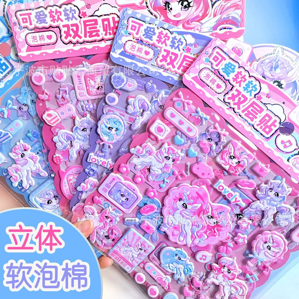 漫画マーメイド二重着せ替え箔押し工芸3d立体スポット幼稚園奨励玩具知育バブルシール