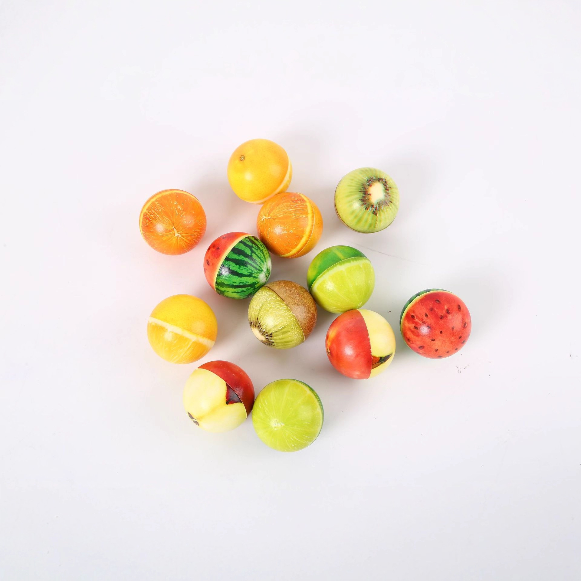 国境を越えたソースシミュレーション果物6.3cmpuスポンジ発泡児童玩具減圧カラープリントボール卸売り
