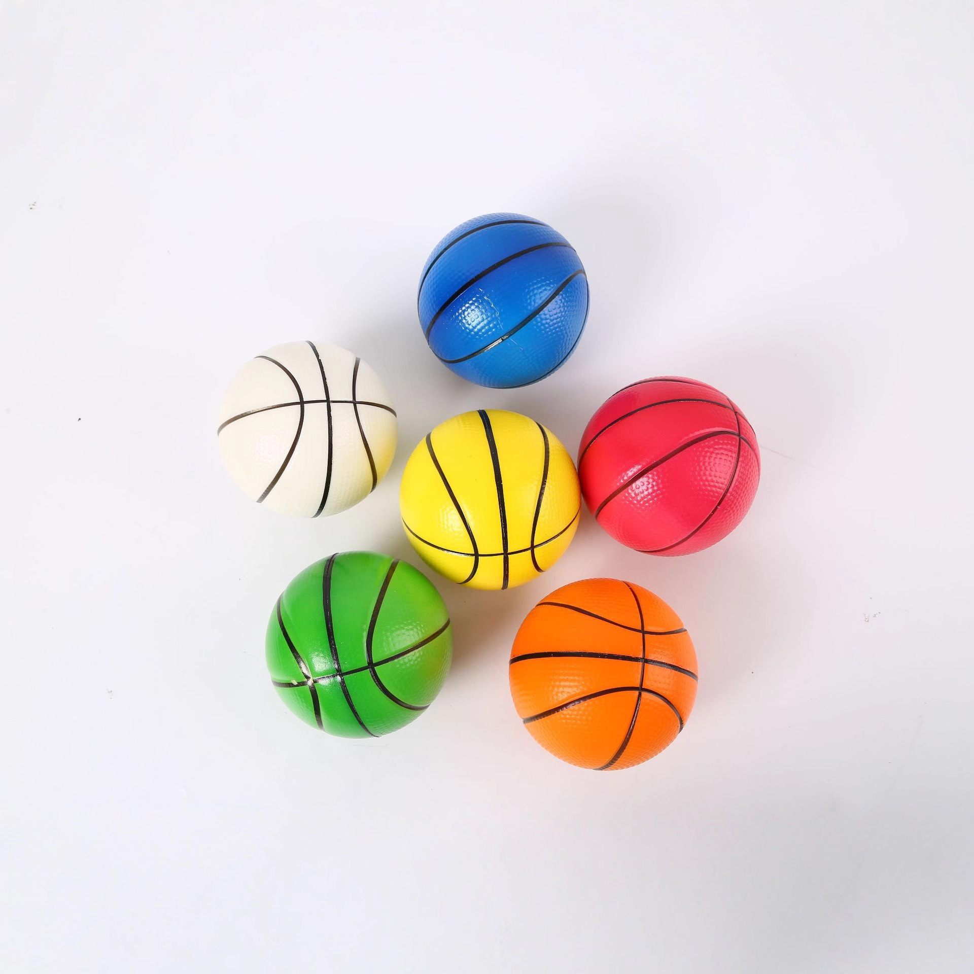 卸売り6.3cm四色バスケットボールpu発泡卸売りカラーバスケットボール知育玩具スポンジ気球玩具ボール