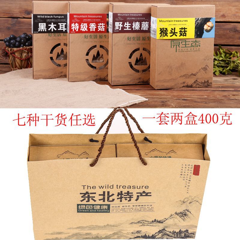 東北特産黒キクラゲ、野生ヘーゼルナッツキノコ、冬虫夏草、ヤマブシ茸、ギフトボックス400g、山の幸ギフト、送料無料、乾物
