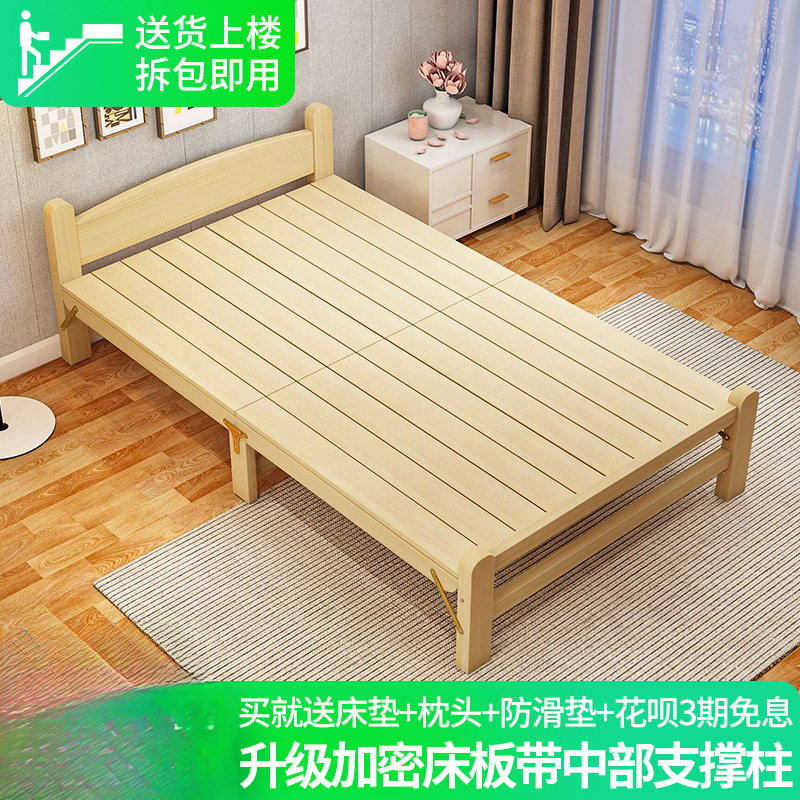 折り畳みベッド実木90cmシングルベッドオフィス昼寝ベッド家庭用1.2メートル硬板木製ベッド賃貸ベッド