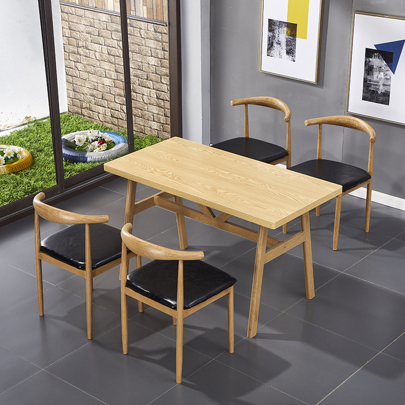 北欧シンプルな鉄芸牛角椅子食堂レストラン麻辣湯麺館ミルクティー軽食ホテルファストフードテーブルと椅子の組み合わせ