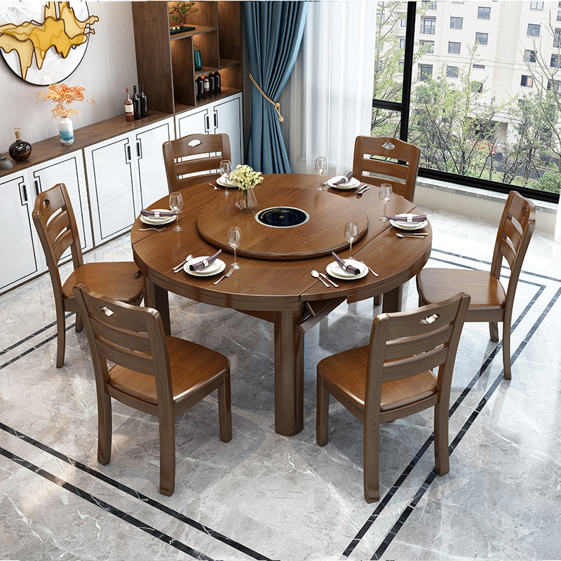 全実木のテーブルと椅子は回転盤の電磁ストーブを持っています。