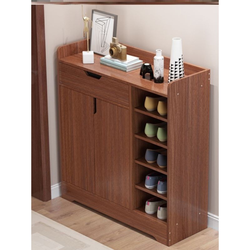 靴棚簡易家庭用入り口の実木色大容量多層防塵経済型入り口の靴棚寮の物置棚