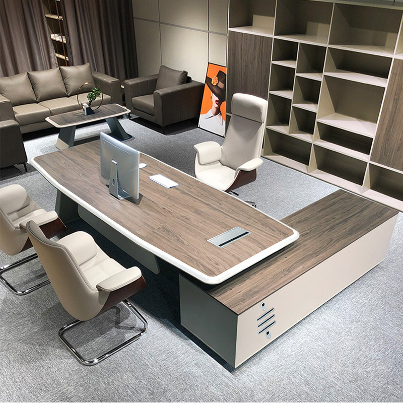 現代の事務机のコーナーの大きい班台のシンプルで軽い豪華な老板の机の岩板のコンピュータの家庭用の机の書斎の事務台