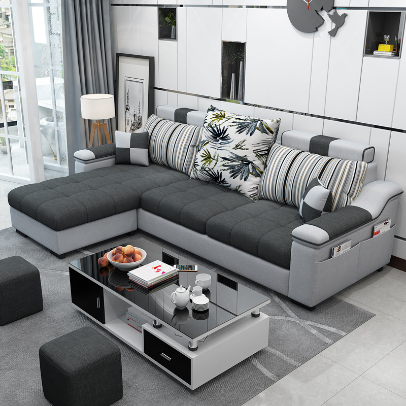 布芸ソファー小戸型客間整装組み合わせコーナー北欧現代セットシンプル科学技術布ソファー
