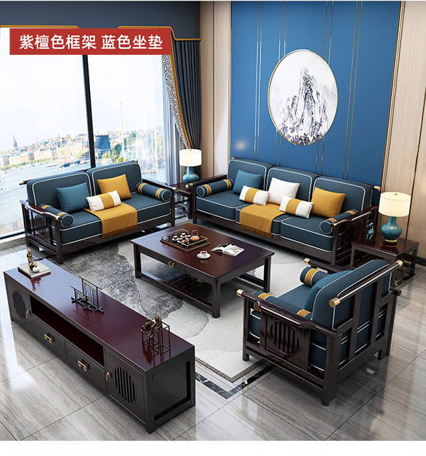 新中国式全実木ソファセット現代シンプル小戸型禅意中国風軽豪華別荘客間家具