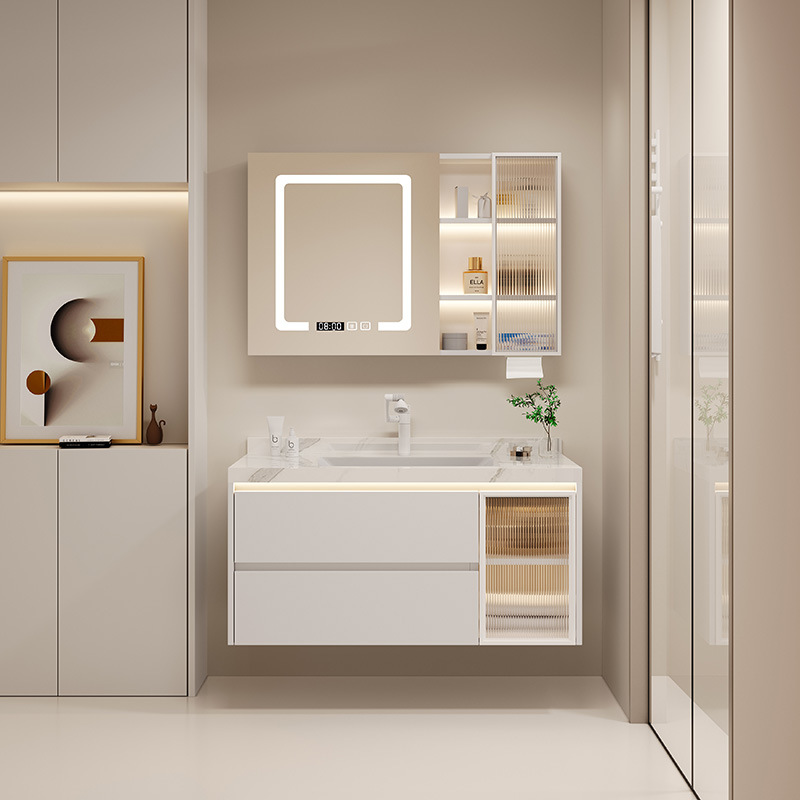 軽くて豪華なクリーム風の知能の岩板の陶磁器の一体のたらいの浴室の戸棚の鏡の戸棚の組み合わせのトイレの洗面台の洗面台