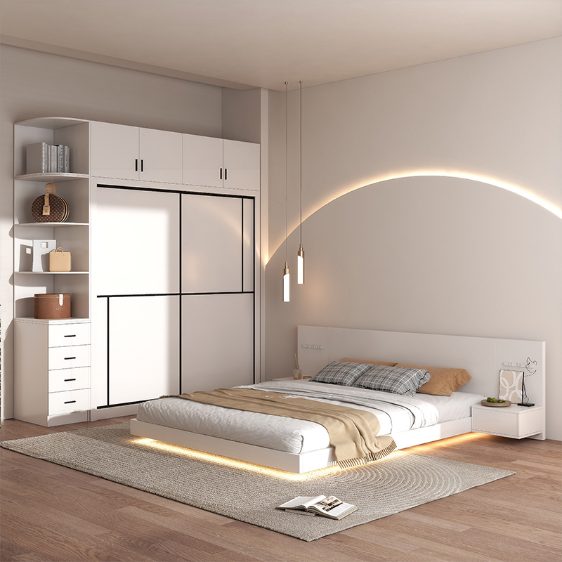 モダンシンプルな寝室のスイートルームの家具セットダブルベッドのタンスの化粧台のベッドの頭の棚の北欧六点セット
