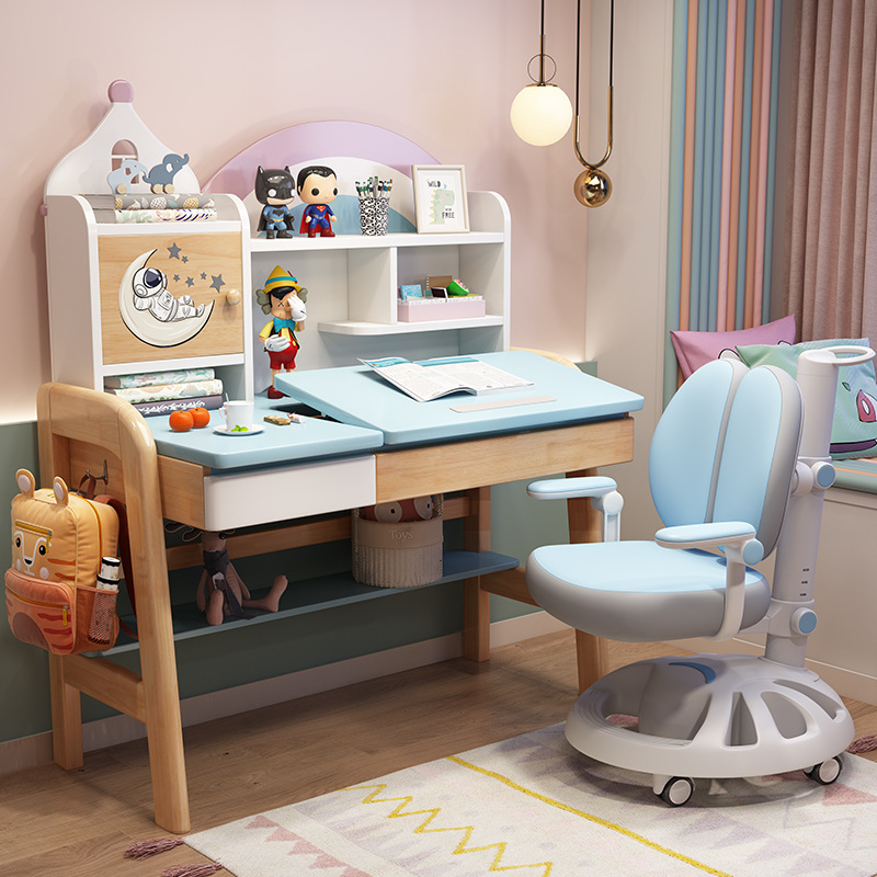 実木児童学習テーブル家庭用デスクトップは、机の寝室の男の子の女の子が学生の机を昇降できるように調節できる