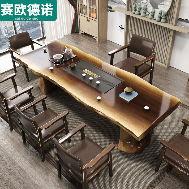 実木の大きい板のお茶と椅子の組み合わせの工夫はお茶のテーブルの禅意のお茶のいくつかの原木のセットの一体の事務室のお茶台を浸します。