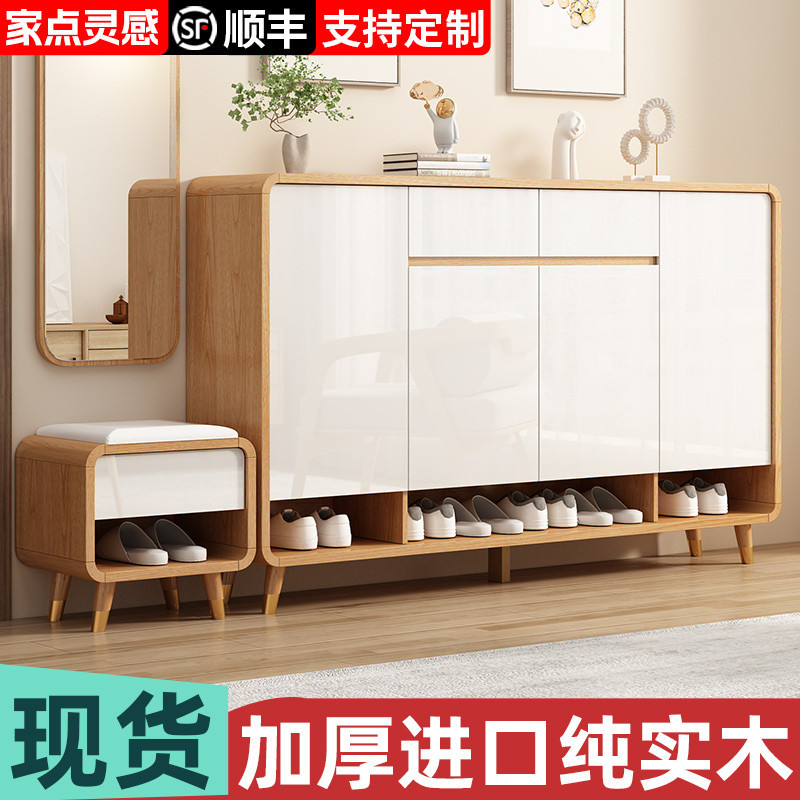 全実木の下駄箱の家庭用入り口の玄関棚は一体で壁に寄りかかって大容量の経済の新型の玄関棚に入ります。