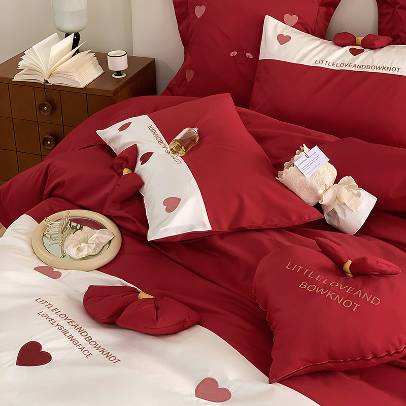 少女の心の赤い結婚祝いの100sの高枝の綿の4つのセットの愛の蝶結びは結婚の寝具をはめます。