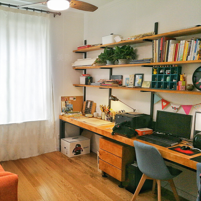 実木二人机本棚家庭用オフィスデスク子供学習デスク大コンピュータデスク本棚一体