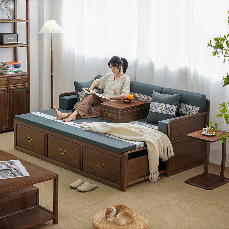 新中国式羅漢ベッドの実木押し引きベッドの箱の貯蔵物のソファーベッドの客間の白蝋の木の胡桃木の軽い豪華なベッド