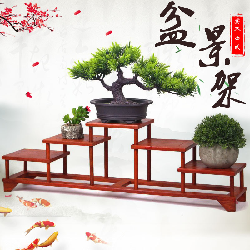 実木多層花棚盆栽棚客間室内木製花棚多肉棚展示棚博古棚