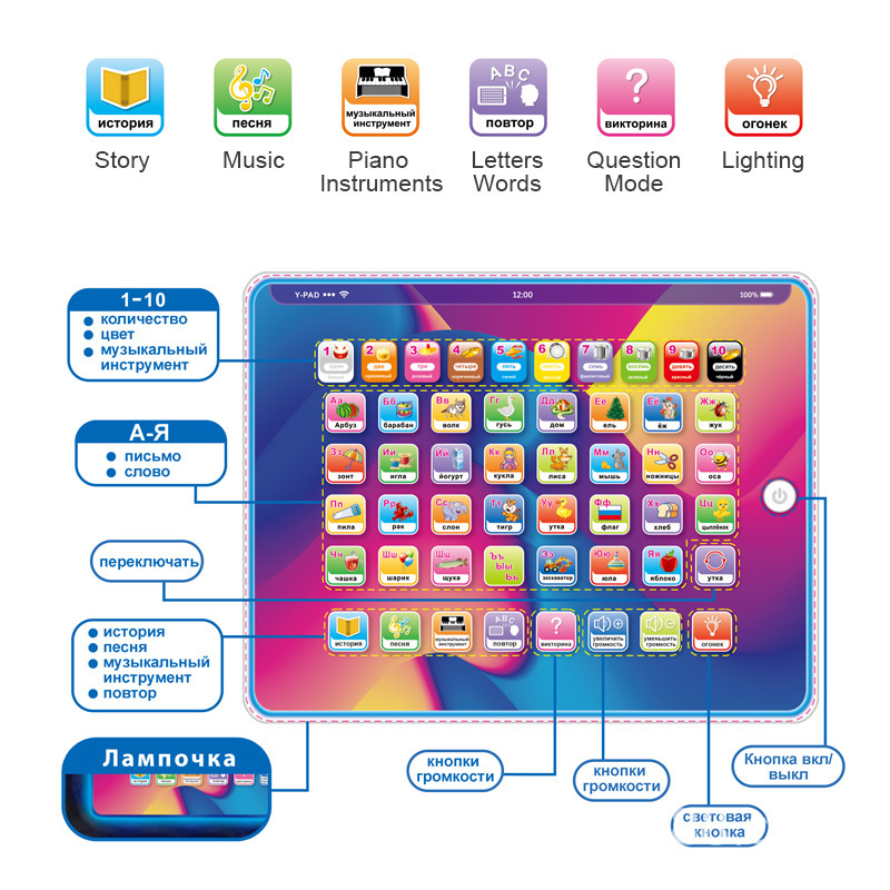 クロスボーダー既製ロシア語アルファベットABC学習機ロシア語早期教育機子供用タブレットおもちゃ歌物語読書