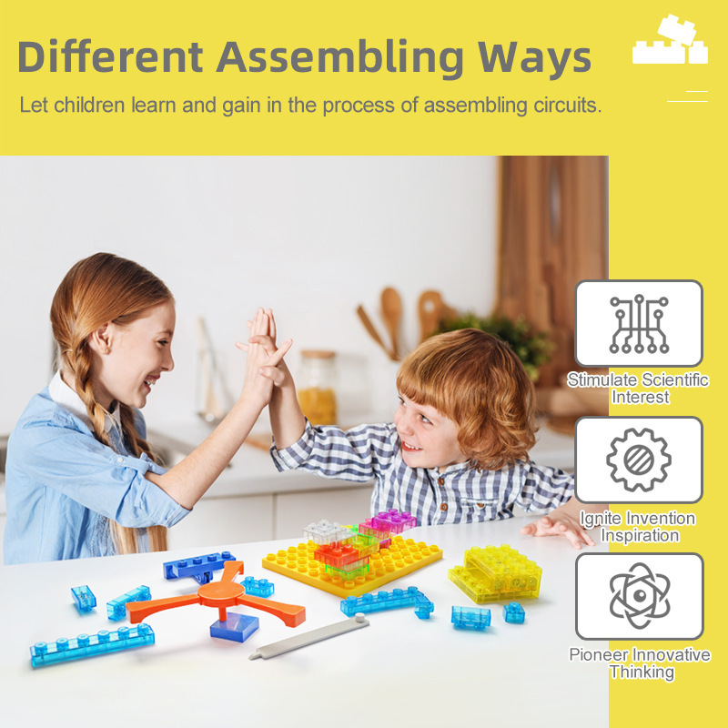 越境新品電気エネルギー積み木電子磁気風車子供電気回路