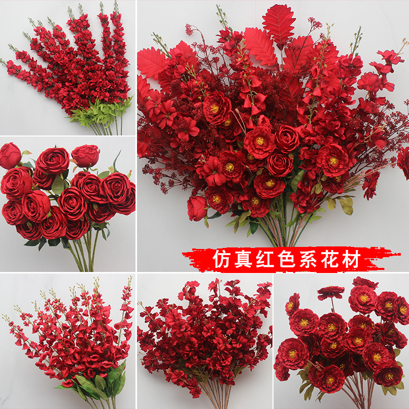 新商品10本入赤系花材結婚祝い花結婚式場軟装路引生け花背景ショーウインドー花芸