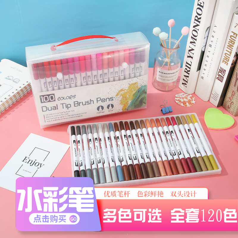 現物クロスボーダー2頭水彩ペンソフト毛水性マークペン絵画マーカーペン子供用フックペン卸売り