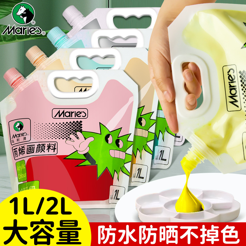 アクリル絵の具1L袋入り卸大容量美术絵絵の具防水壁絵diy落书き絵の具