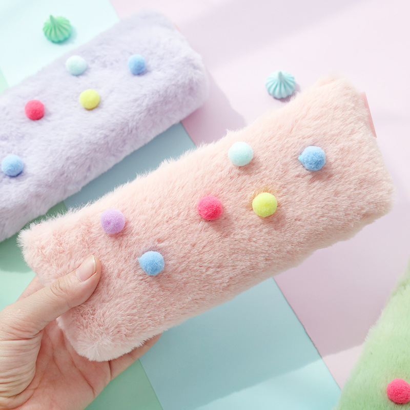 ♡マカロン色毛玉筆袋ins女子シンプル高校生大容量文房具袋日系中学生鉛筆