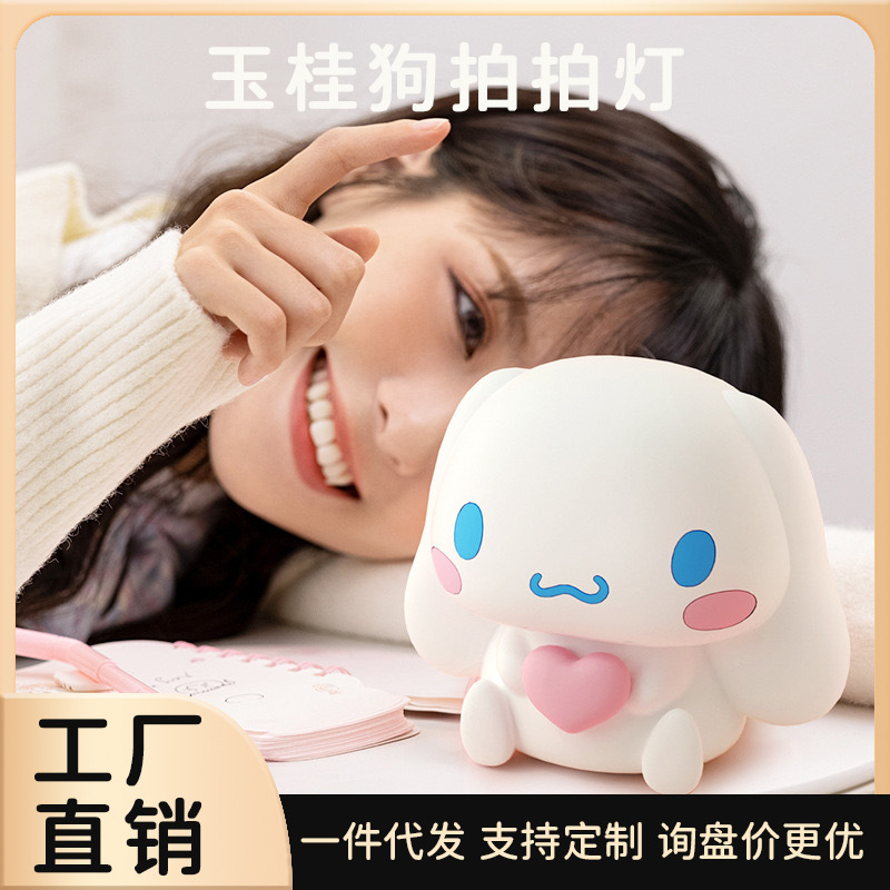 玉桂犬の小夜灯寮の寝室のベッドの上で大きい耳の犬のシリカゲルの睡眠は明かりをたたいて目の柔らかい光の電気スタンドを保護します。