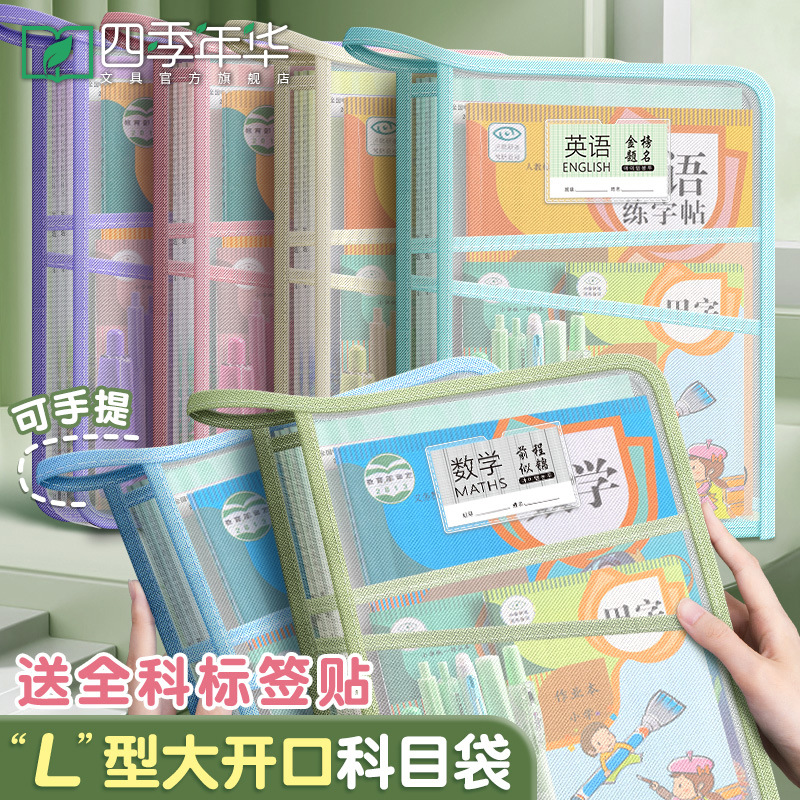 L型科目分類袋透明書類袋ジッパー式網糸開口手提げ本袋書類袋試験巻袋
