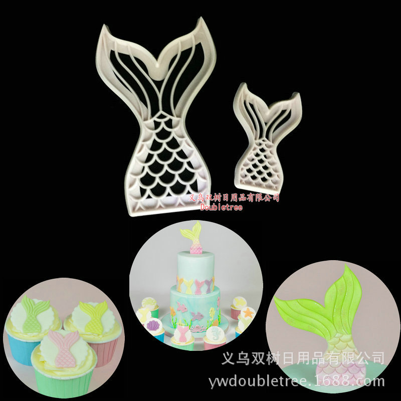 新品2pcsマーメイドテールシュガーケーキプリント型シュガーケーキクッキー装飾金型oppジェーン